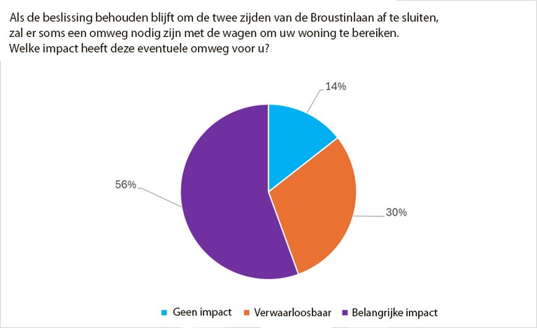 68,5% van de buurtbewoners in de zone van de enquête gaf aan tegen het project in zijn geheel te zijn, en 63,7% van de respondenten was tegen de sluiting van de Broustinlaan.